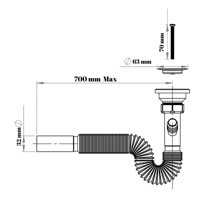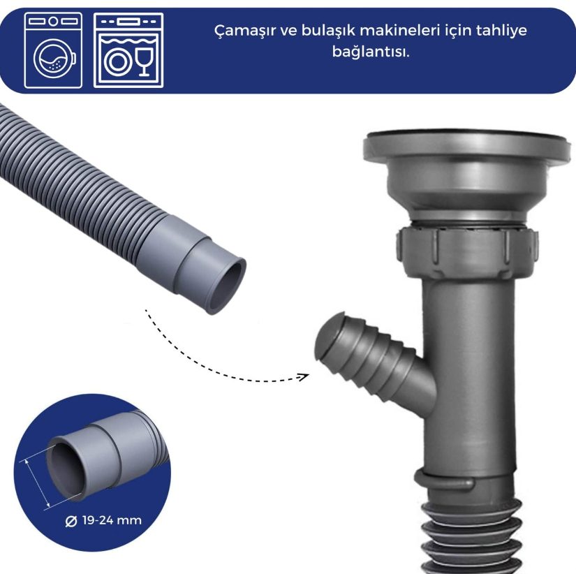 Donau Lüx Körüklü Lavabo Sifonu Çamaşır-Bulaşık Çıkışlı