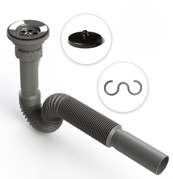 • Donau Lüx Körüklü Lavabo Sifonu Çamaşır-Bulaşık Çıkışlı